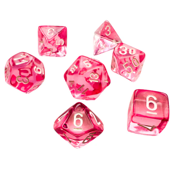 See Mini-hedral™ täringukomplekt on mõeldud lauapõhiste rollimängude jaoks, nagu Dungeons & Dragons, Pathfinder ja teised TTRPG-d. Komplekt sisaldab 7 läbipaistvat roosat mini-täringut valgete numbritega, mis sobivad ideaalselt nii mängimiseks kui kogumiseks.