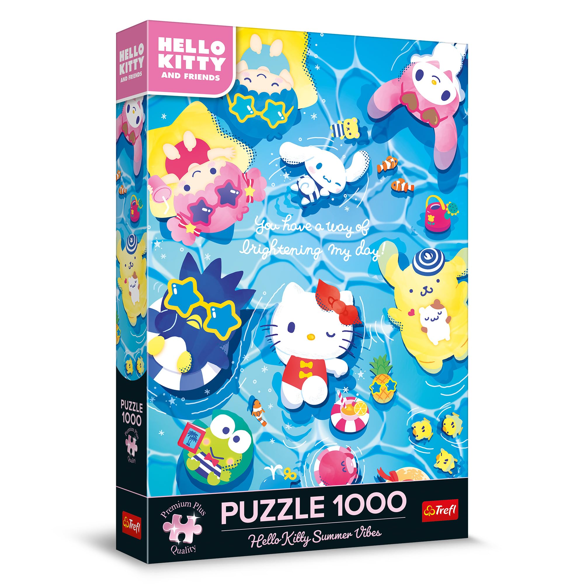 Hello Kitty Summer Relaxation on Trefl Premium Plus sarja kvaliteetne 1000-osaline pusle, mis toob kokku suvise meeleolu, rõõmsad värvid ja armastatud Hello Kitty tegelased. Pildil naudivad Kitty White ja tema sõbrad lõõgastavat suvepuhkust, luues sooja ja positiivse elamuse igale puslesõbrale.